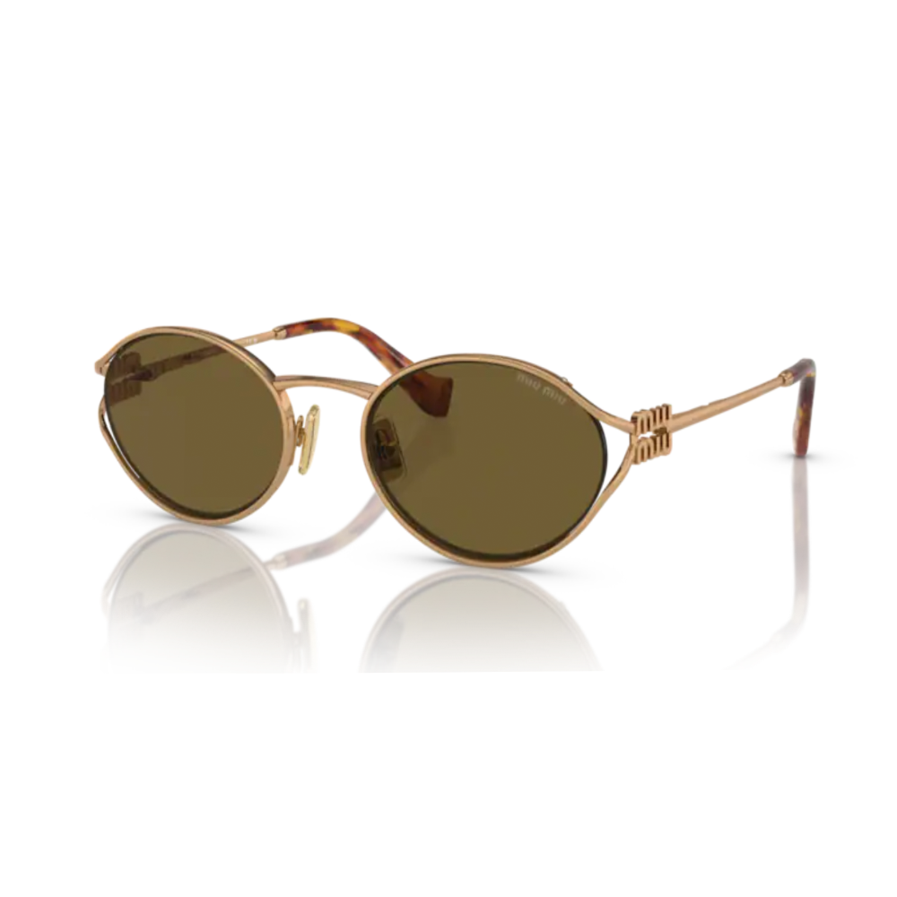 Logo solglasögonen från MIUMIU i guld och ett brunt glas.