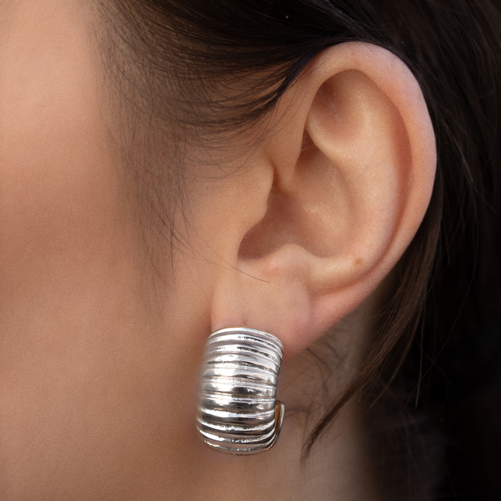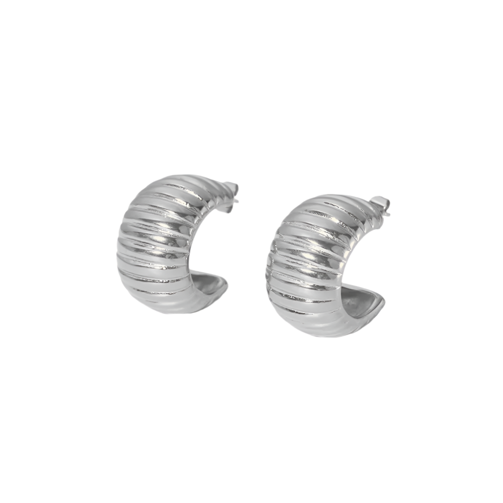 – elegant ribbed earrings that can be worn for any occasion, whether casual or formal. These versatile earrings enhance any outfit with a touch of sophistication. Available in silver and gold.